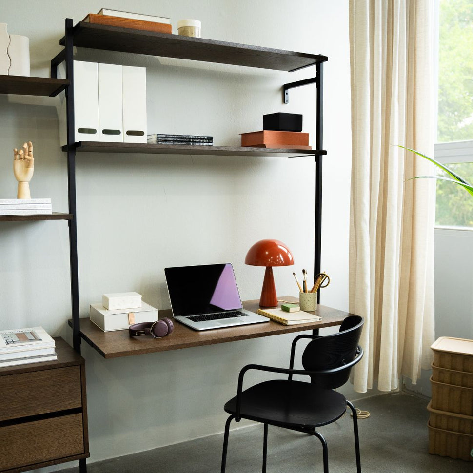Vous pouvez personnaliser votre coin bureau en associant ce système à d’autres solutions de rangement de la collection Frame Walk-in, rien ne vous empêche d’ajouter des étagères par exemple. Vous pouvez régler la hauteur des tringles à vêtements, étagères et bureau selon vos envies.