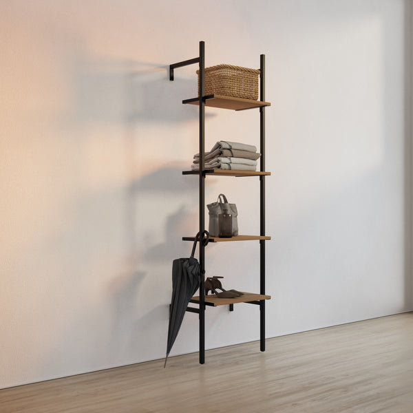 Notre étagère Frame John est équipée d’une tablette en placage chêne, disponible en version fumée ou classique. Vous choisissez la combinaison de couleurs qui correspond le mieux à votre intérieur. Avec une profondeur de 30 cm, cette étagère offre amplement d’espace pour vos vêtements, baskets ou même vos casseroles. La largeur est également personnalisable afin que vous puissiez optimiser au mieux votre espace.