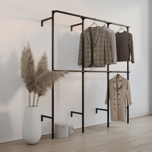 Le design épuré de nos portants et tringles robustes en métal ne se contente pas de vous offrir de l’espace pour vos vêtements, il vous permet aussi d’exprimer votre style. Grâce à leur structure ouverte, vos vêtements sont mis en valeur et deviennent une véritable extension de votre intérieur, comme un cadre qui révèle votre personnalité. Que ce soit dans la chambre ou dans le hall d’entrée, vous bénéficiez d’un rangement organisé et d’une vue d’ensemble claire sur vos pièces, pour toujours savoir quelles options de style vous avez à portée de main. N’hésitez pas, partagez votre style avec le monde !