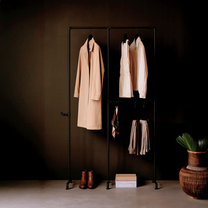Que vous aménagiez un petit appartement, un atelier créatif ou une garde-robe ouverte, Wild Bill Elliot se démarque. Sa structure en tuyaux de fer noir crée une esthétique urbaine et épurée qui met vos vêtements en valeur.
